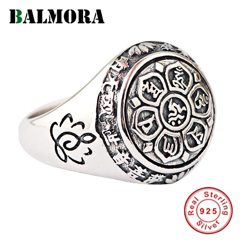 Special Offer BALMORA 100% prawdziwe 925 Sterling Silver sześć słowa Mantra pierścienie dla kobiet mężczyzn palec pierścień prezenty Buddhistic biżuteria Anillos SY20992 Discount 25% Today!