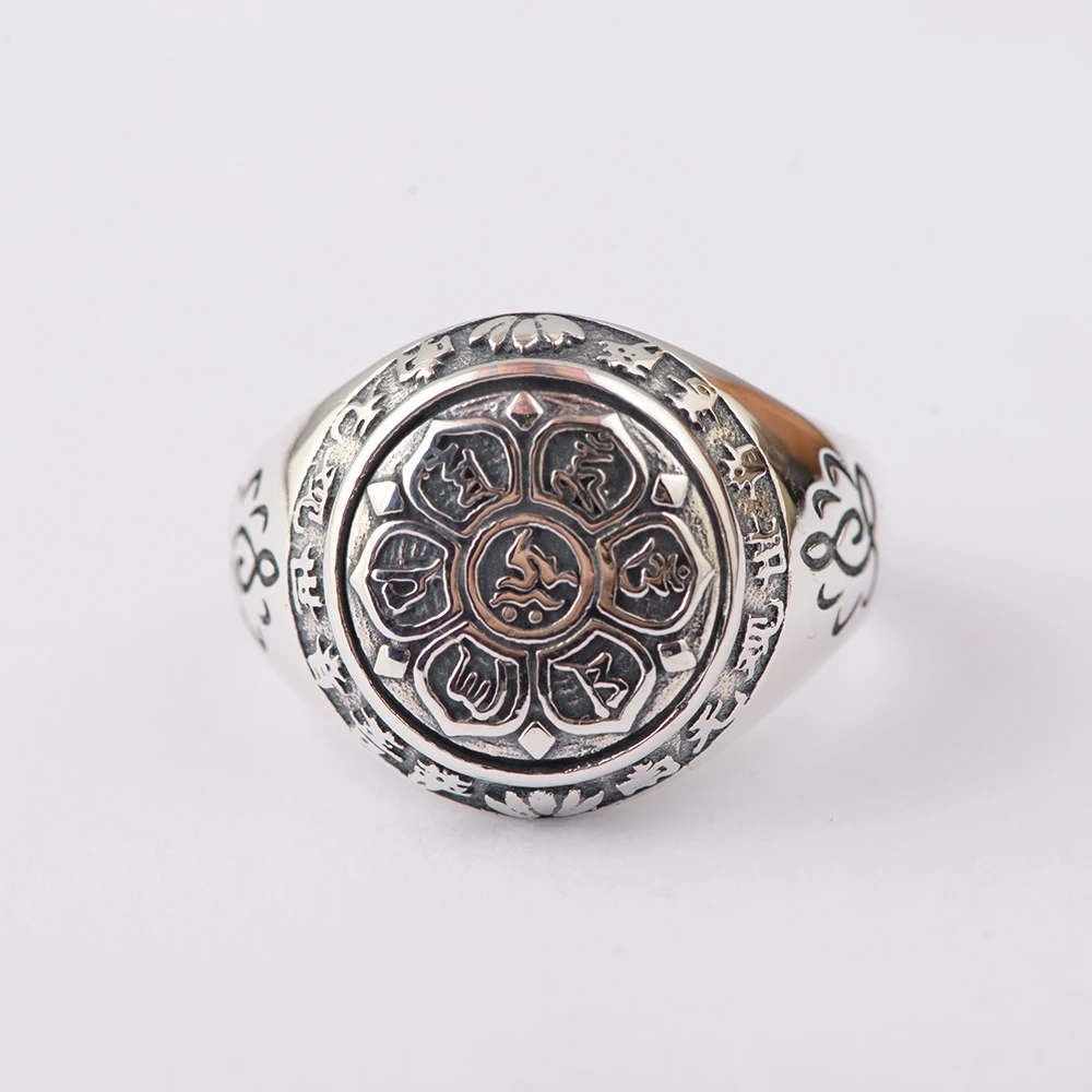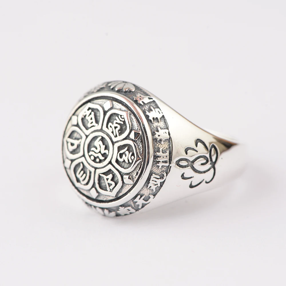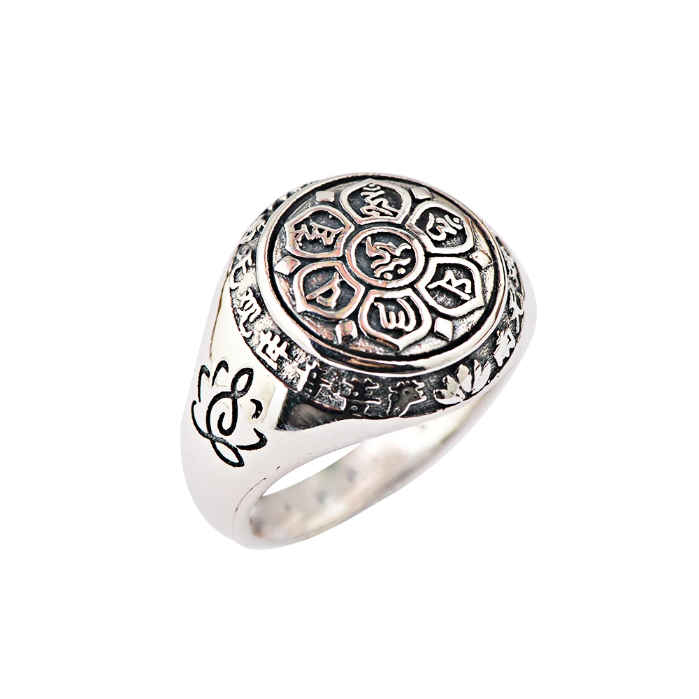 Product Name: BALMORA 100% prawdziwe 925 Sterling Silver sześć słowa Mantra pierścienie dla kobiet mężczyzn palec pierścień prezenty Buddhistic biżuteria Anillos SY20992