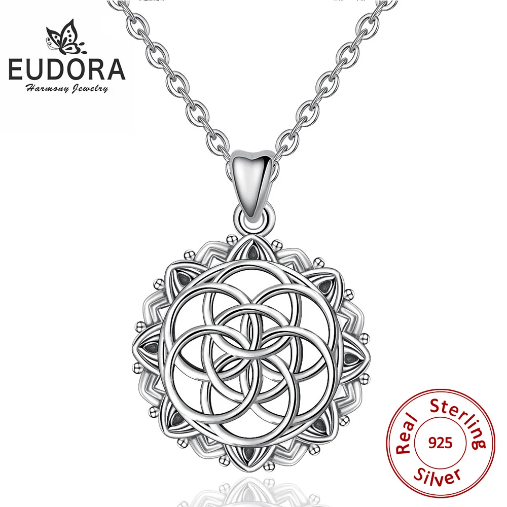 Special Offer Eudora 925 Sterling Silver geometryczne nasion życia naszyjnik irlandzki Celtics Knot naszyjnik Fine jewelry dla kobiet CYD396 Discount 30% Today!