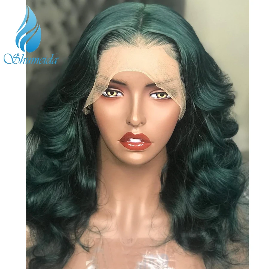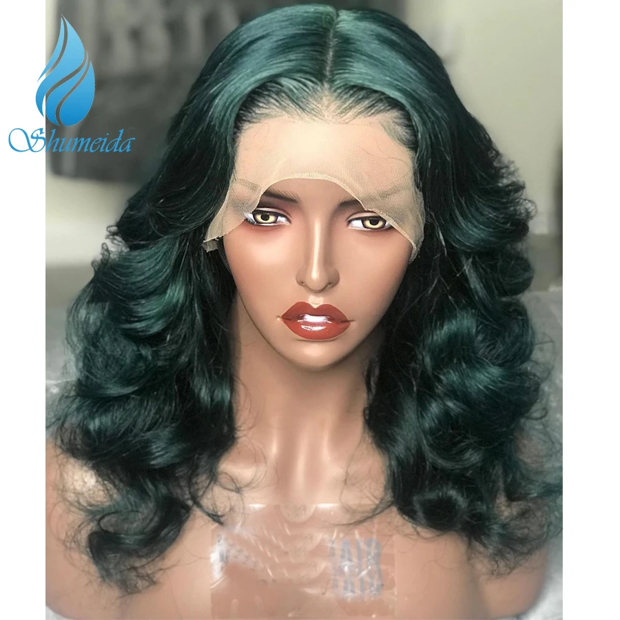 Special Offer Niebieski kolor koronki przodu peruki z dziecięcymi włosami długie ciało fala brazylijski Remy włosy peruki ludzki włos wstępnie oskubane linia włosów 13*6 Frontal peruka Discount 40% Today!