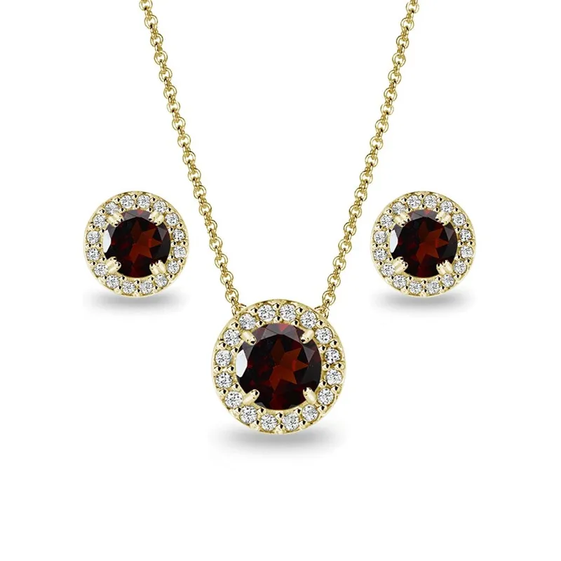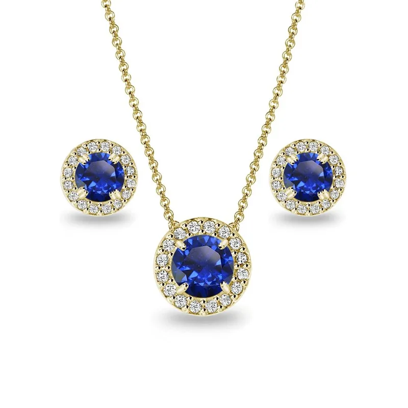 Special Offer Złoty błysnął Sterling Silver oryginalna, stworzony lub symulowane kamień okrągłe Halo naszyjnik i kolczyki zestaw kolczyków z CZ akcenty Discount 0% Today!