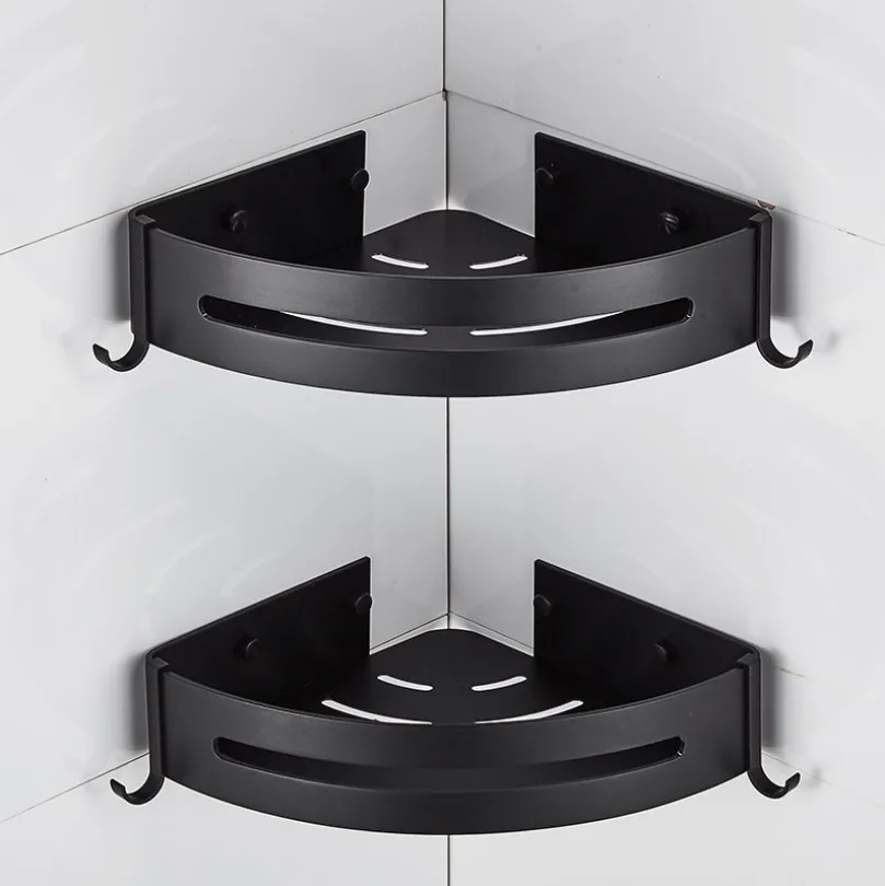 Special Offer Przestrzeń aluminium czarny łazienka półki rogu do montażu na ścianie prysznic Rack szampon do przechowywania wieszak na ręczniki łazienka akcesoria Discount 30% Today!