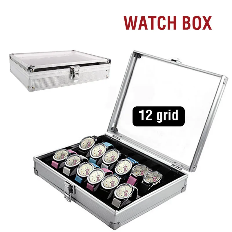 Product Name: 12 siatki prostokąt pole zegarek uchwyt na zegarek pudełko do przechowywania Aluminium zegarek plastikowy Organizer szafka коробка для часов pudełko na prezent