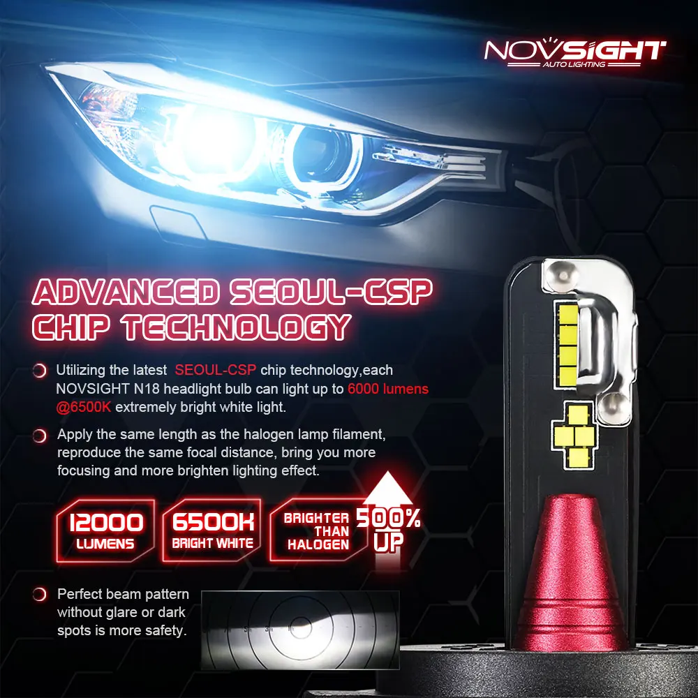 Special Offer NOVSIGHT reflektor samochodowy H4 Hi lo wiązka LED H7 H8 H9 H11 H13 9005 9006 9007 40W 12000lm 6500K żarówki reflektorów samochodowych Discount 40% Today!