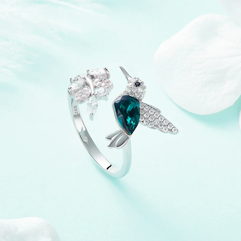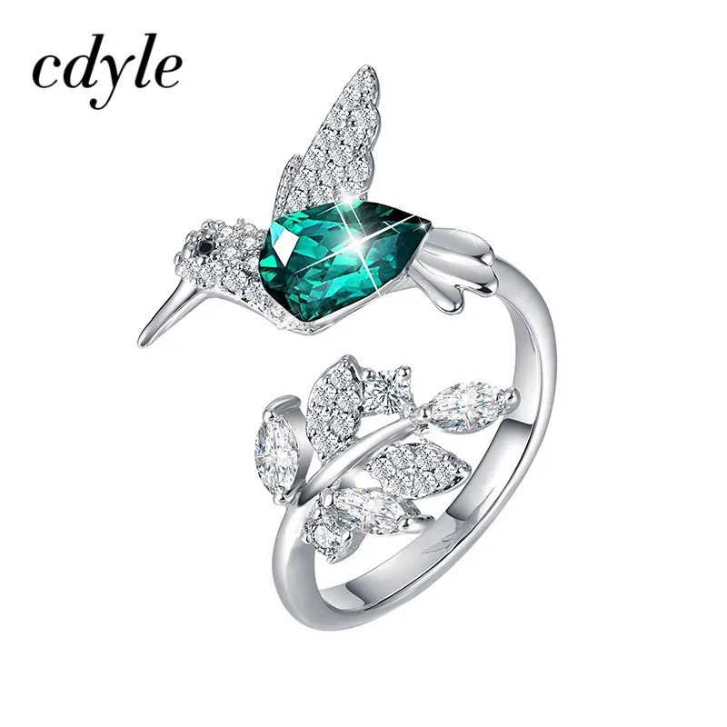 Product Name: Cdyle obrączki 925 Sterling Silver biżuteria ozdobione kryształami Hummingbird kobiet pierścienie regulowane