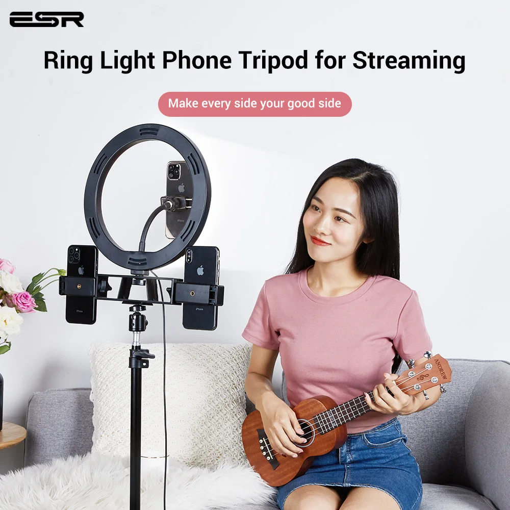 Product Name: ESR lampa wideo możliwość przyciemniania LED Selfie lampa pierścieniowa lampa usb oświetlenie fotograficzne uchwyt telefonu 2M stojak trójnóg do makijażu Youtube