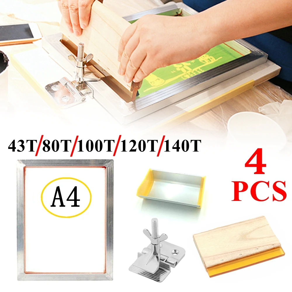 Special Offer 4 sztuk 43 T 100 T 120 T 140 T sitodruk zestaw rama aluminiowa + zacisk zawias + emulsja Scoop Coater + ściągaczki części do narzędzi zestawy Discount 51% Today!