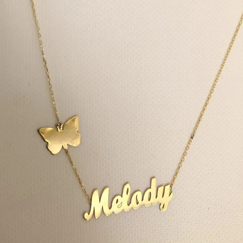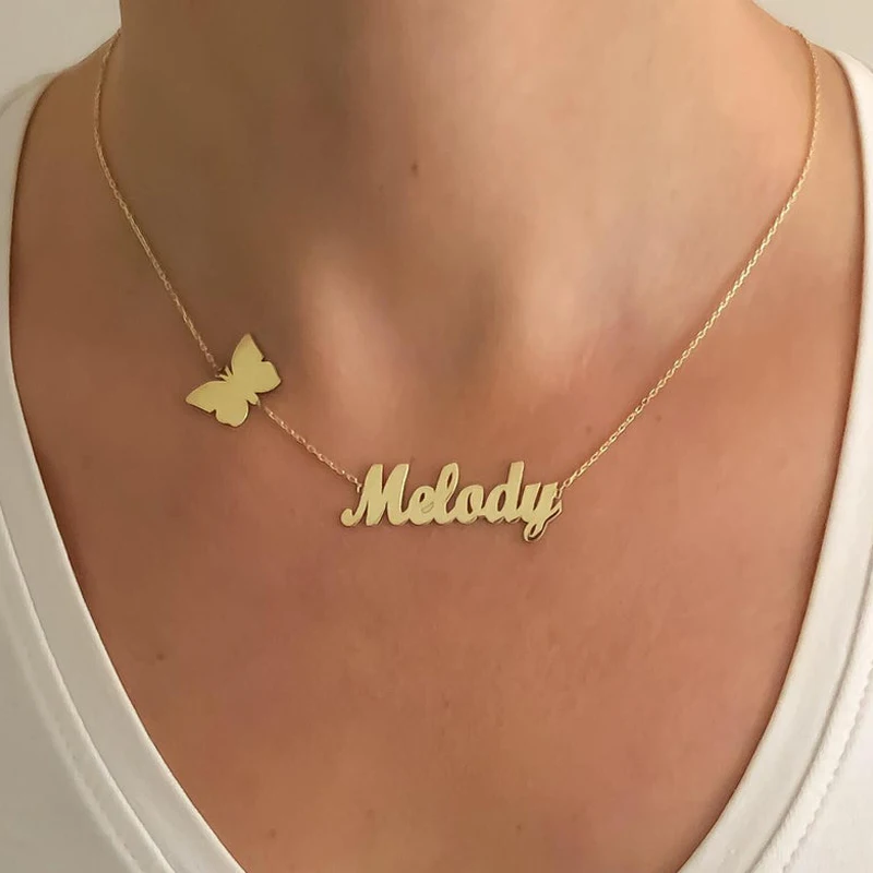 Special Offer Spersonalizowane motyl nazwa wisiorek Collier nazwa niestandardowa naszyjnik kobiety ze stali nierdzewnej złoty motyl naszyjniki wisiorki biżuteria Discount 30% Today!