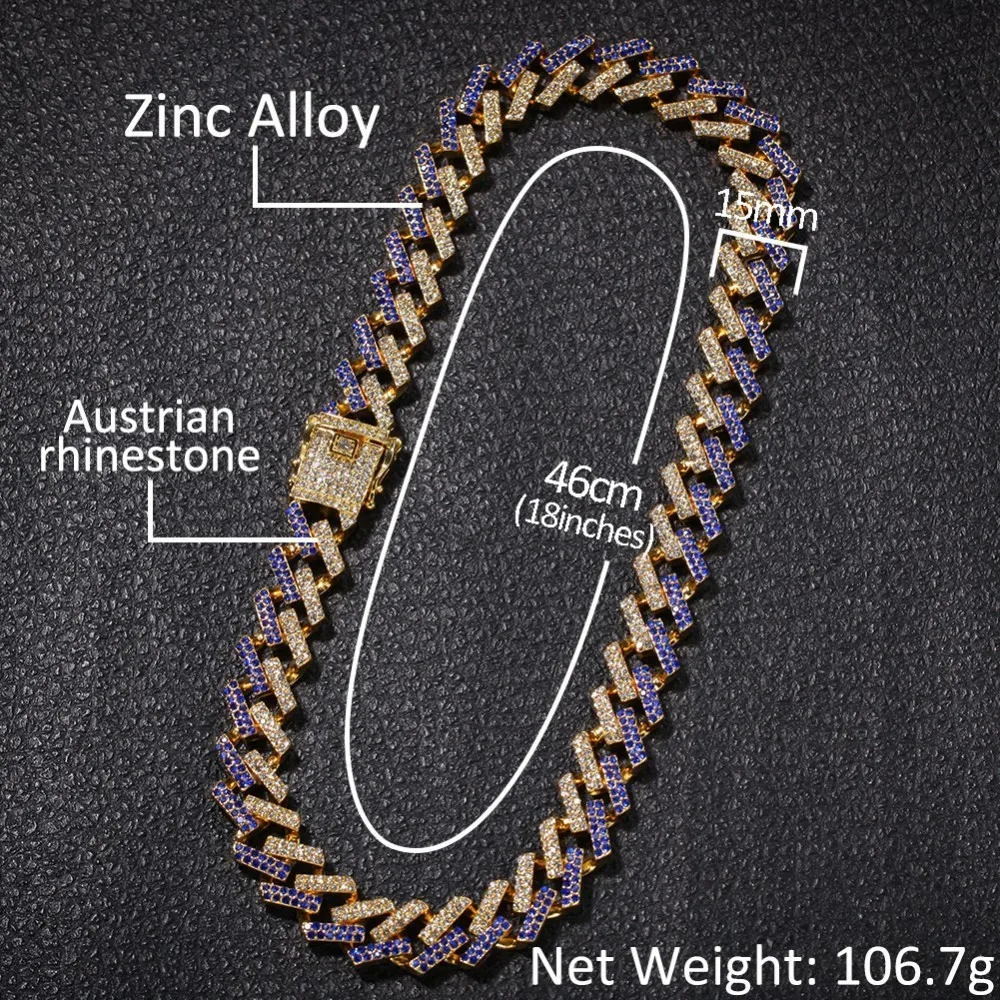 Product Name: UWIN NE + BA moda naszyjniki biżuteria i bransoletki 15mm moda złoty kolor Iced Out 2 wiersz Prong kubański Link łańcuchy dla mężcz...