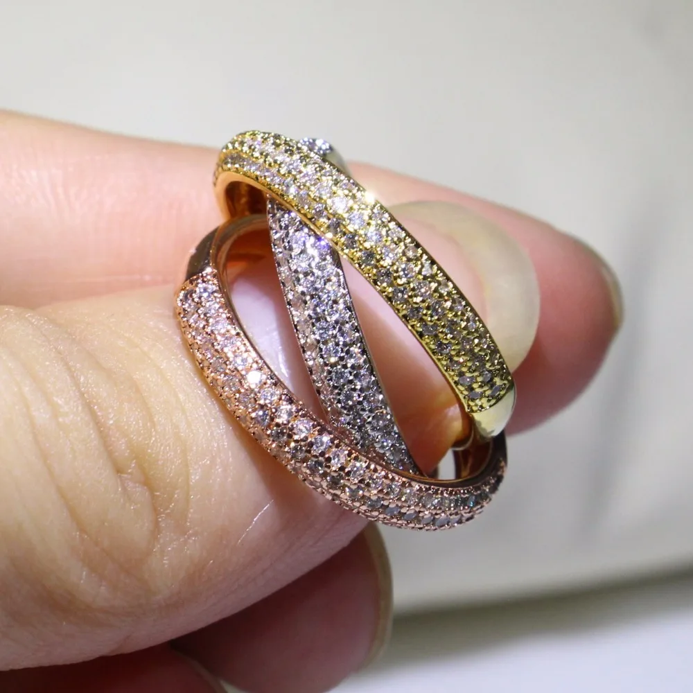 Product Name: Potrójne koła złoto różowe złoto srebrny pierścień trzy kolory luksusowa biżuteria ze srebra próby 925 Pave pierścień cz kobiety obrączki ślubne prezent