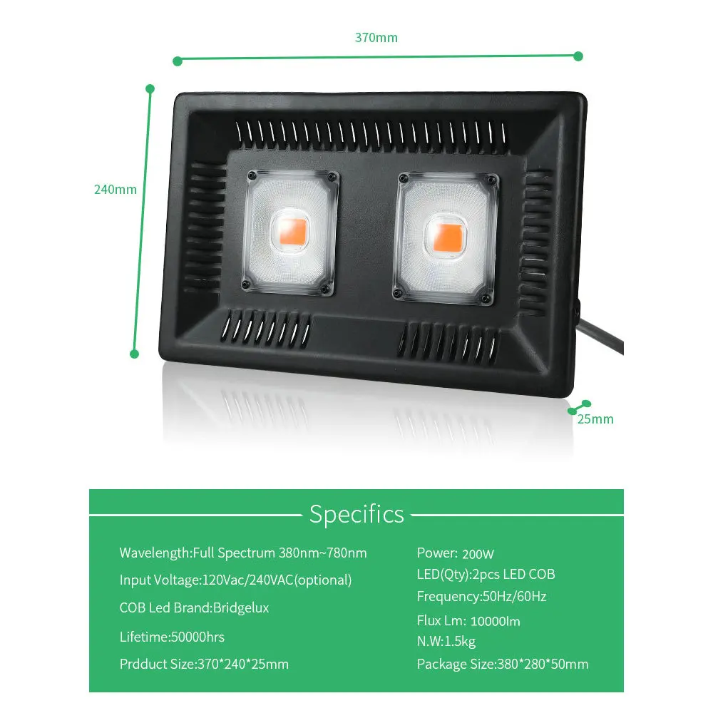 Product Name: BUYBAY pełnozakresowe led oświetlenie do uprawy wodoodporna IP67 100W 200W 300W COB wzrost światło halogenowe dla roślin kryty szklarnia hydroponiczna