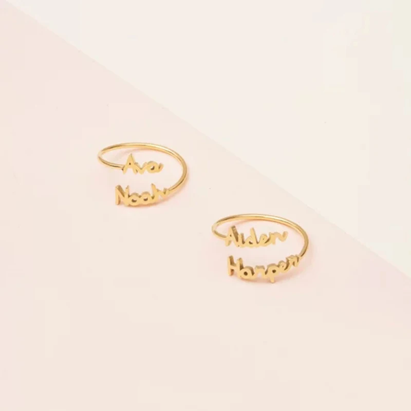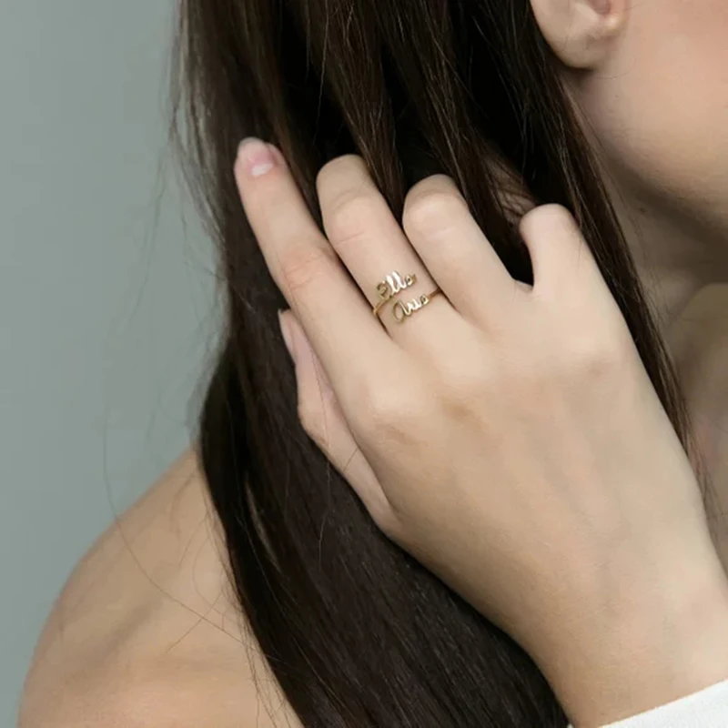 Product Name: Dainty biżuteria podwójna warstwa dwie nazwy nazwa własna pierścienie ze stali nierdzewnej regulowane ręcznie robione pierścionki dla kobiet prezent dla najlepszego przyjaciela