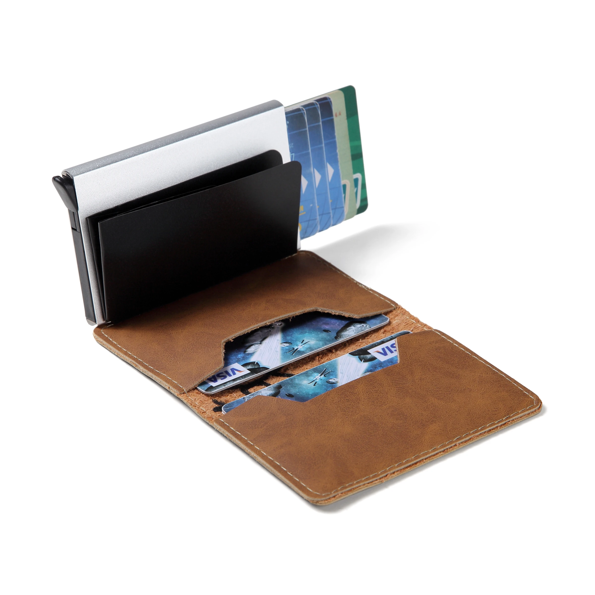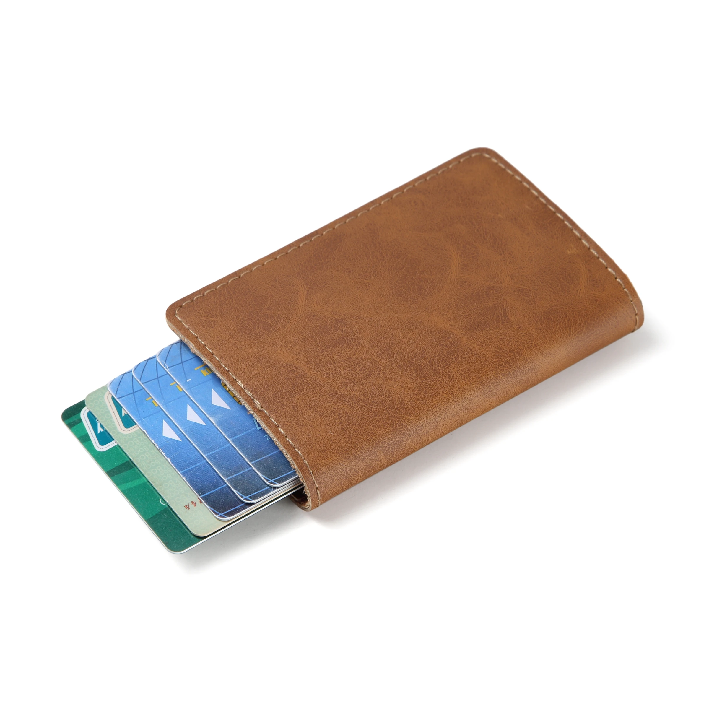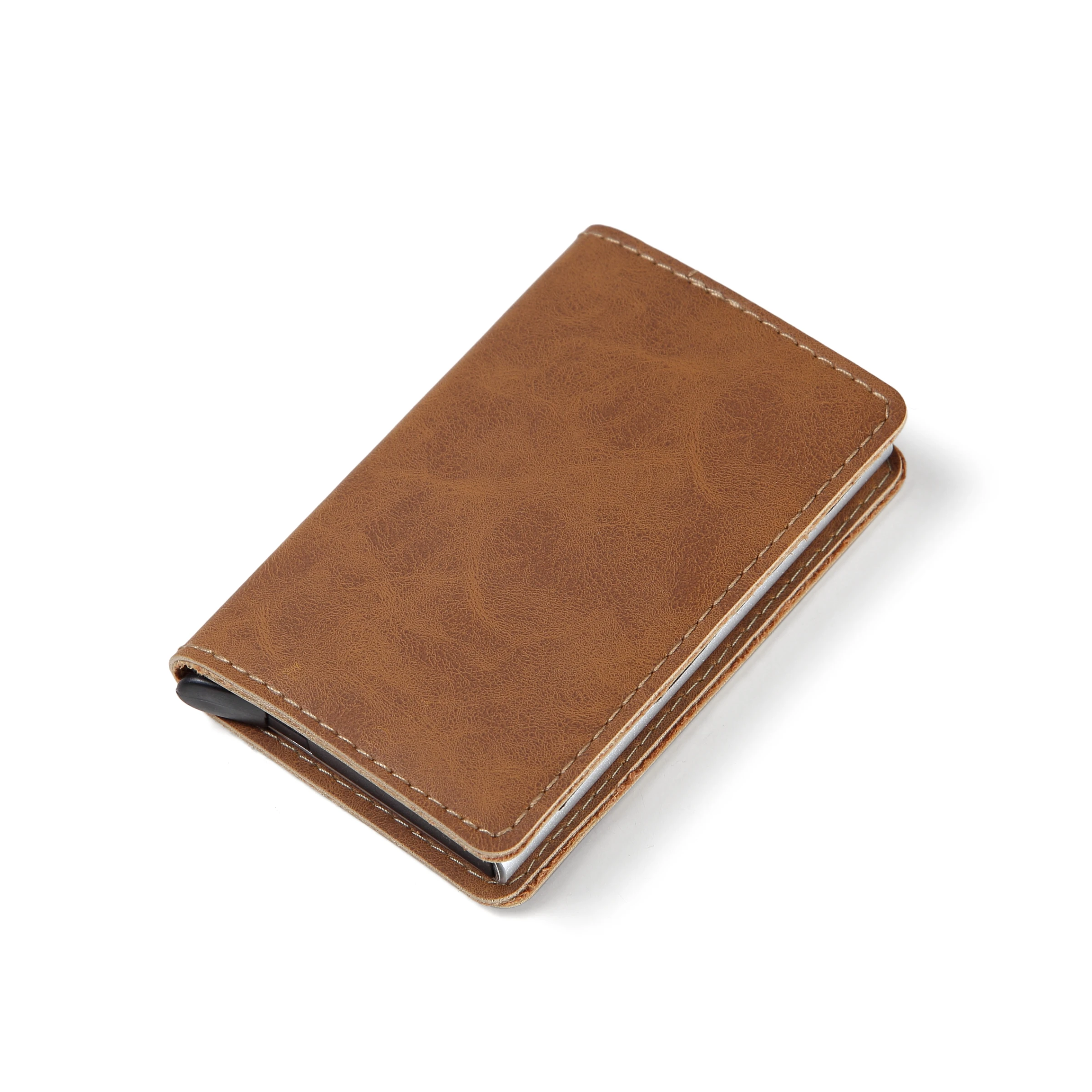Product Name: Portfel męski automatyczne etui na karty kredytowe skóra crazy horse aluminiowy Mini portfel z tylna kieszeń ID Card RFID Blocking