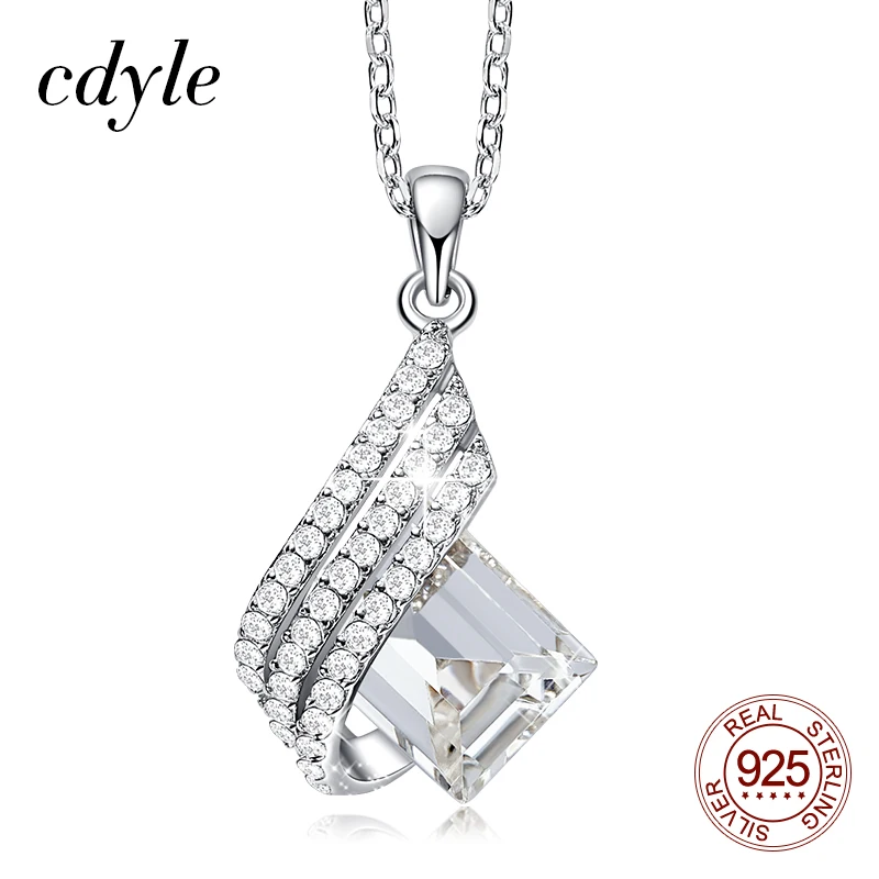 Special Offer Cdyle Dainty elegancki 925 Sterling srebrna biżuteria jasne geometryczne z kryształkami wisiorek naszyjnik kobiety dziewczyna prezent urodzinowy Discount 60% Today!