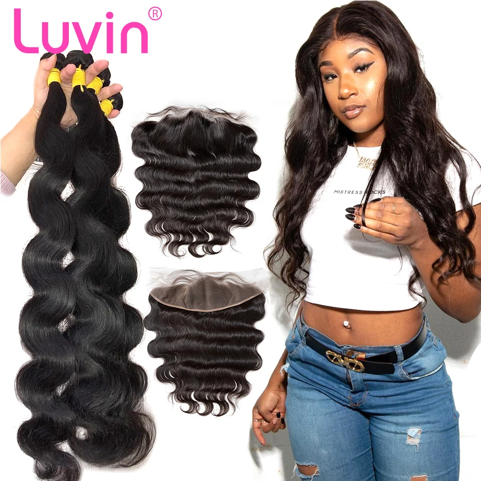 Product Name: Luvin 28 30 32 34 40 calowe włosy brazylijskie wyplata 3 4 zestawy z 13x4 koronka Frontal i zamknięcie Remy ciało fala 100% ludzki włos
