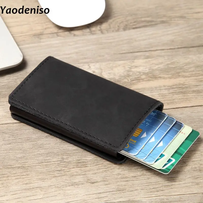 Product Name: 2019 Anti theft mężczyzn rocznika posiadacz karty kredytowej blokowania Rfid portfel skórzany Unisex bezpieczeństwa informacji aluminium Metal torebka