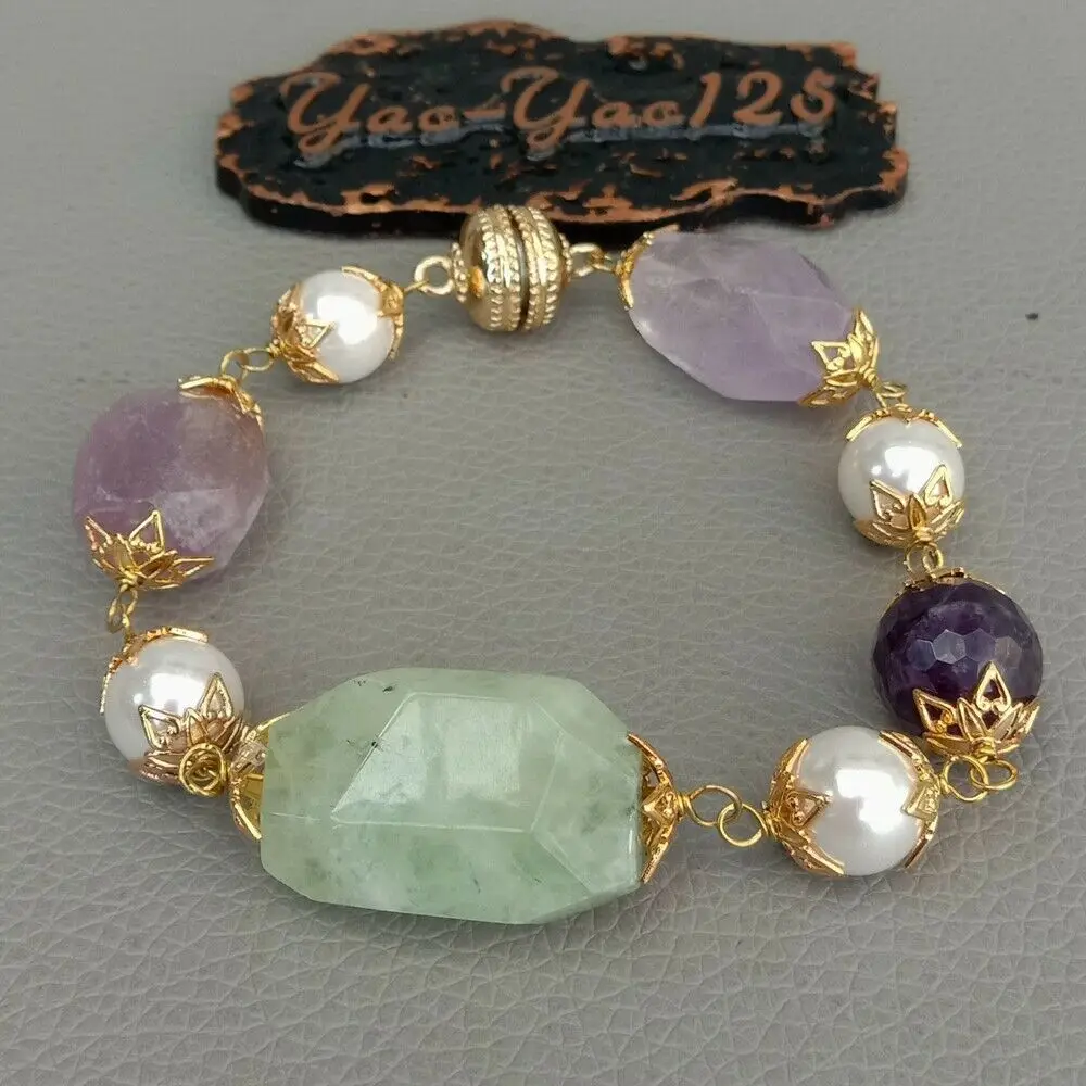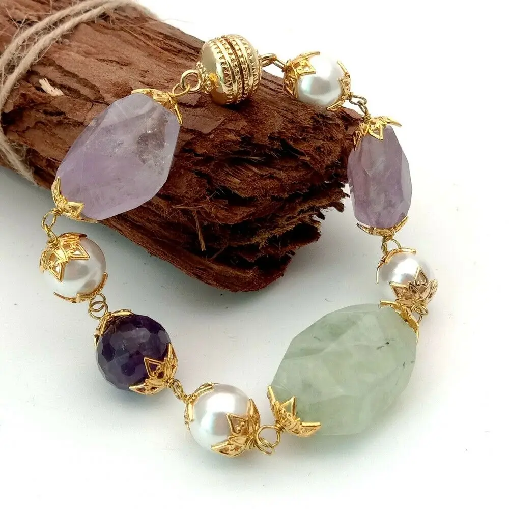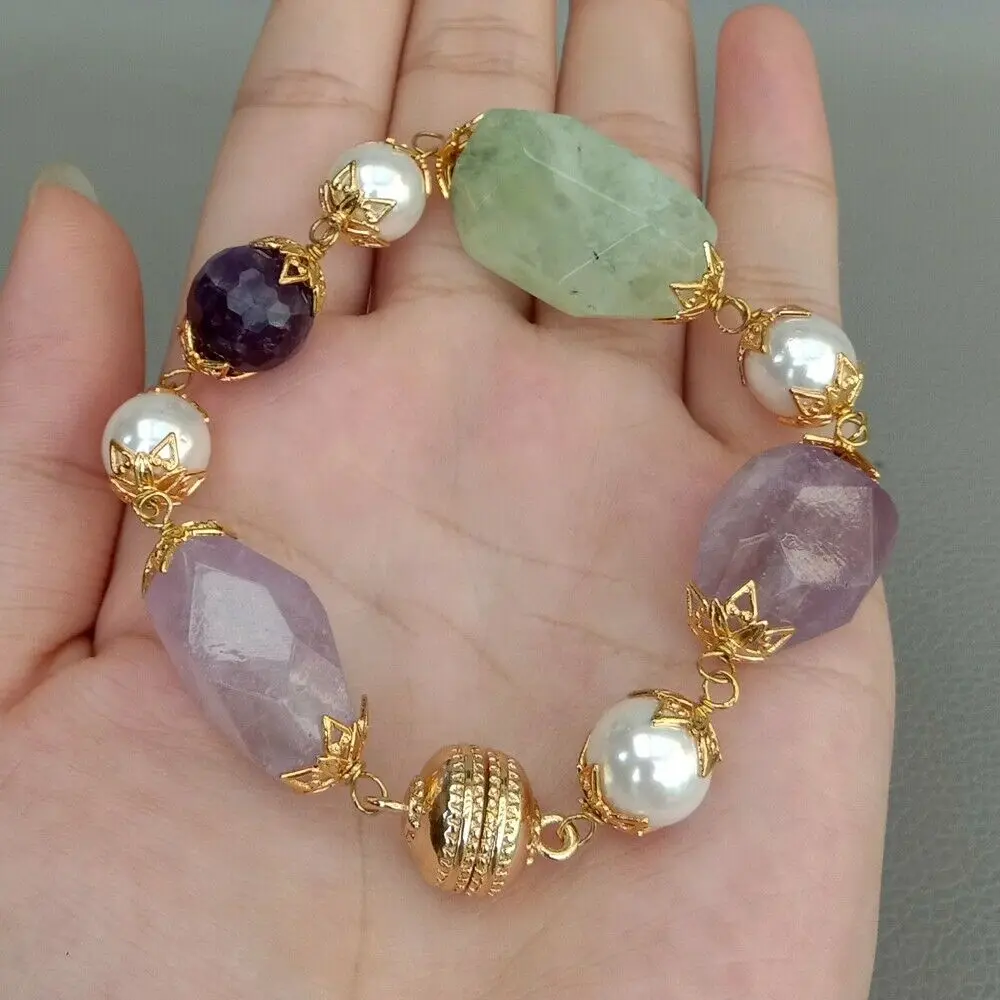 Special Offer Białe perły typu shell Amethst Prehnte Gems Stone Bracelet Discount 0% Today!
