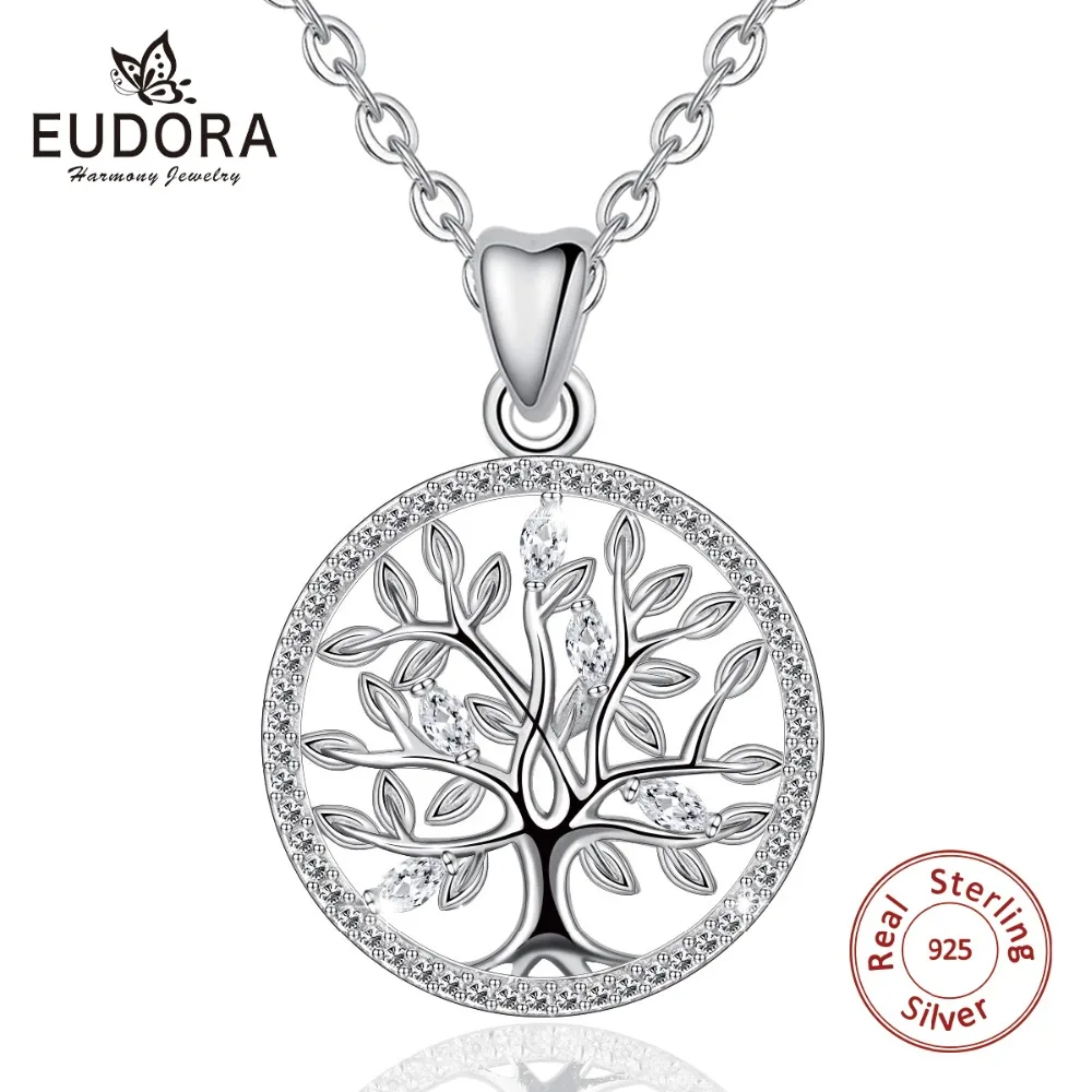 Special Offer EUDORA 925 srebro naszyjnik drzewo życia dąb drzewo CZ wisiorek natura biżuteria panna młoda prezent urodziny najlepszy prezent D401 Discount 20% Today!