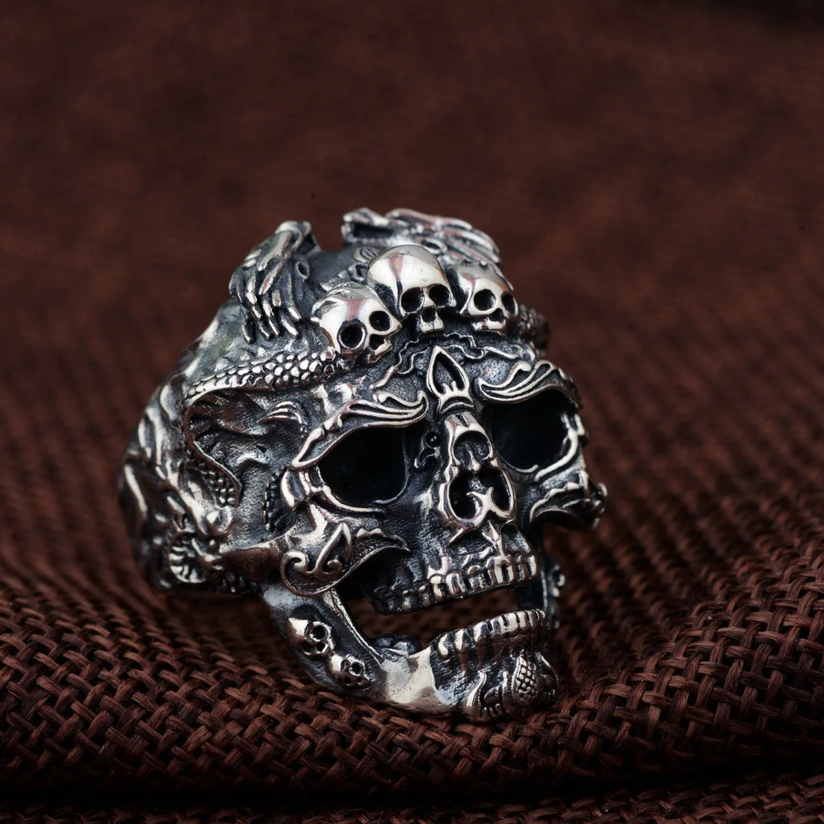 Product Name: Spersonalizowane Skull Head pierścionki męskie Biker duży ciężki Resizable 925 srebro Vintage Punk Gothic Rings dla mężczyzn