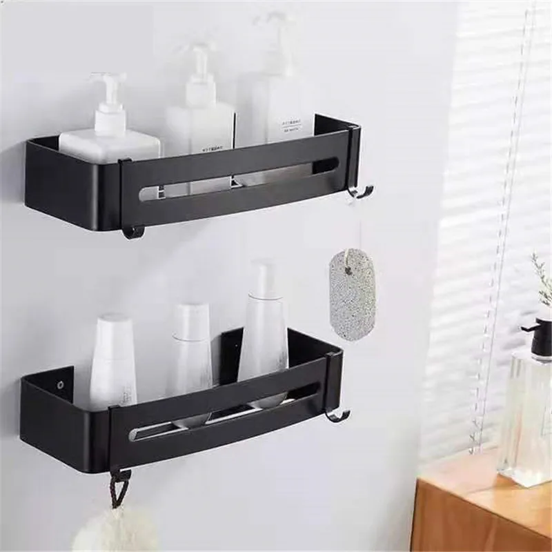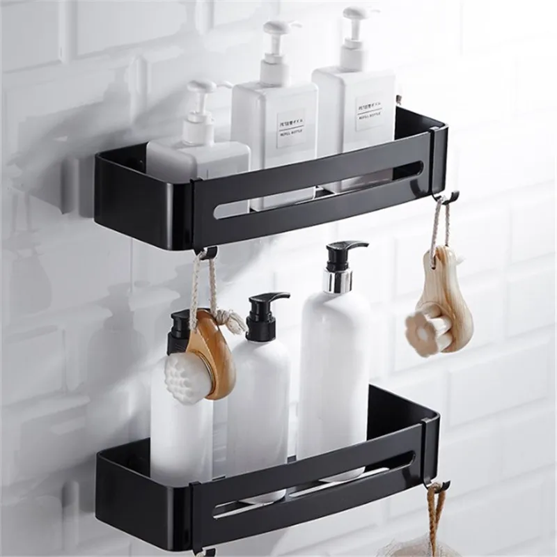 Product Name: LIUYUE półki łazienkowe czarne aluminium łazienka kwadratowe uchwyty na haki półka ścienna szampon półki kosmetyczne regał magazynowy