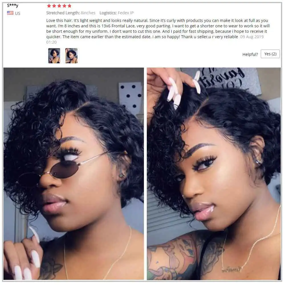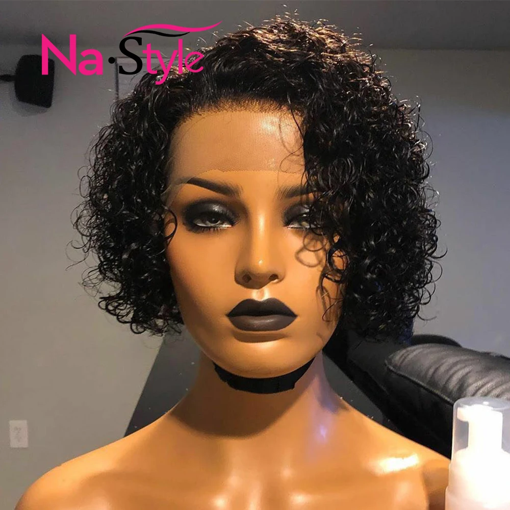 Product Name: Fryzura pixie koronkowa peruka Preplucked Blunt Cut Bob koronkowa peruka z naturalnych krótkich włosów kręcone 13x6 koronkowa peruka z ludzkich włosów Glueless