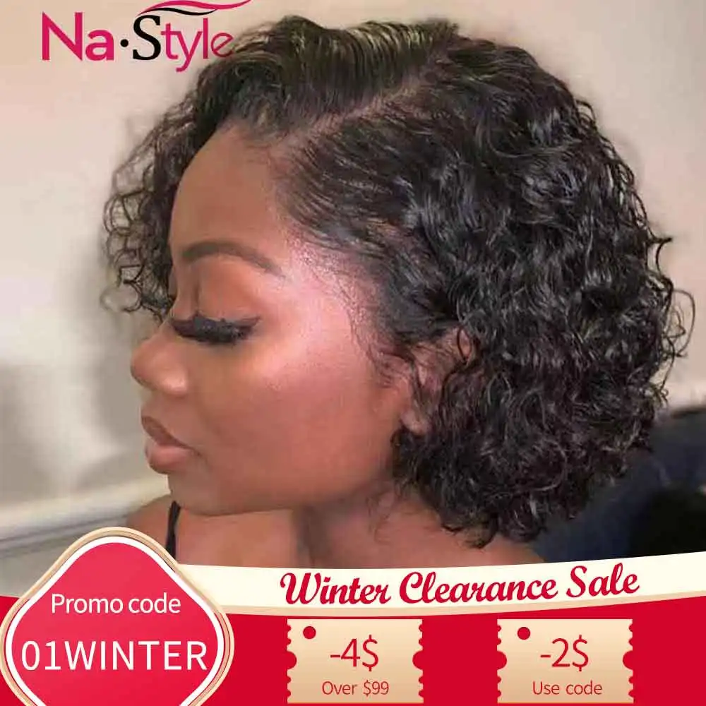 Special Offer Fryzura pixie koronkowa peruka Preplucked Blunt Cut Bob koronkowa peruka z naturalnych krótkich włosów kręcone 13x6 koronkowa peruka z ludzkich włosów Glueless Discount 43% Today!
