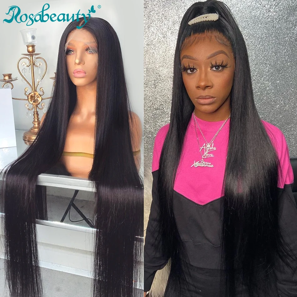 Product Name: Rosabeauty długi glueless 13x4 koronki przodu włosów ludzkich peruk wstępnie oskubane brazylijski prosto Frontal peruka dla czarnych kobiet