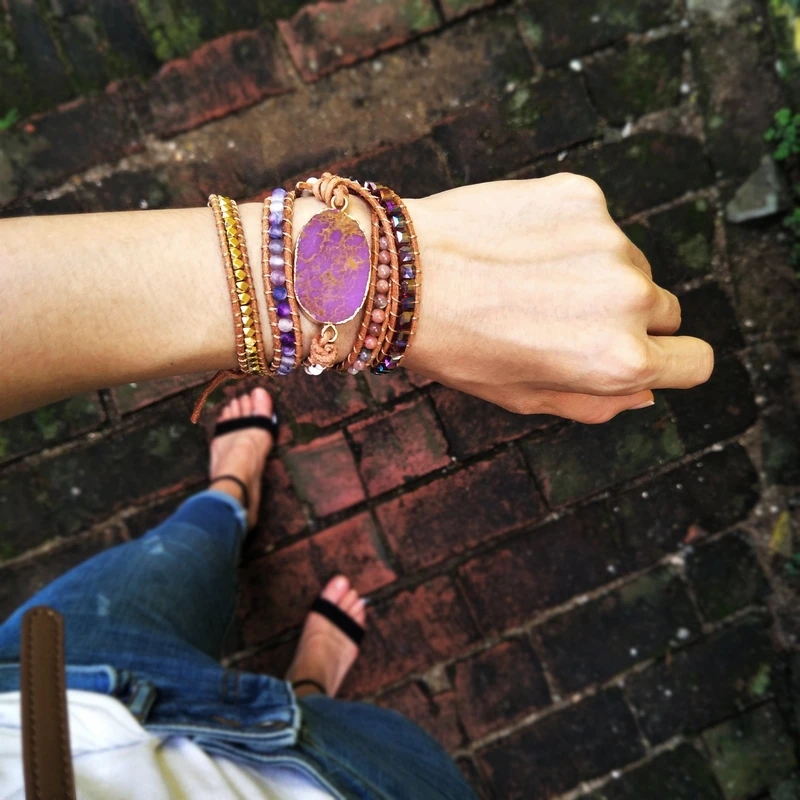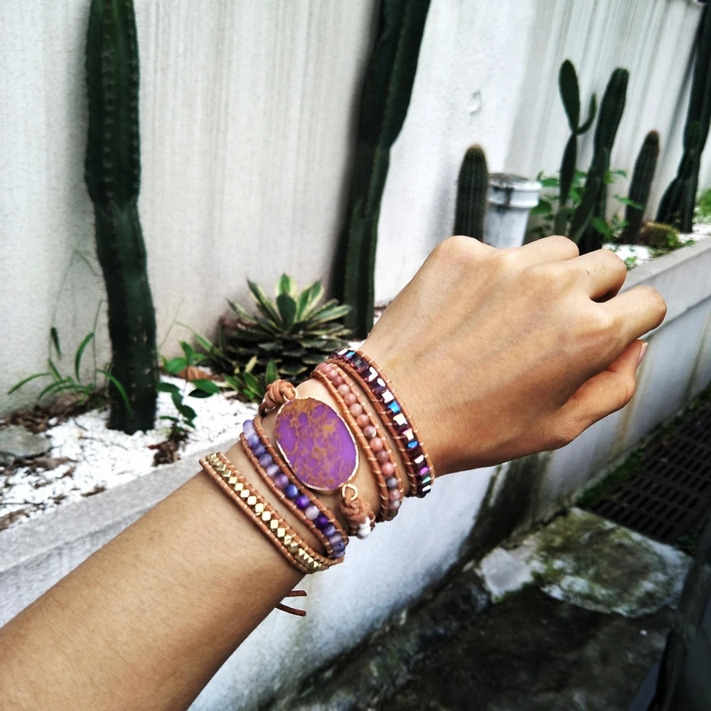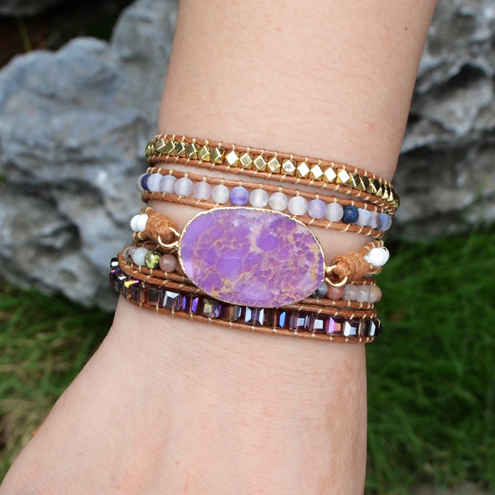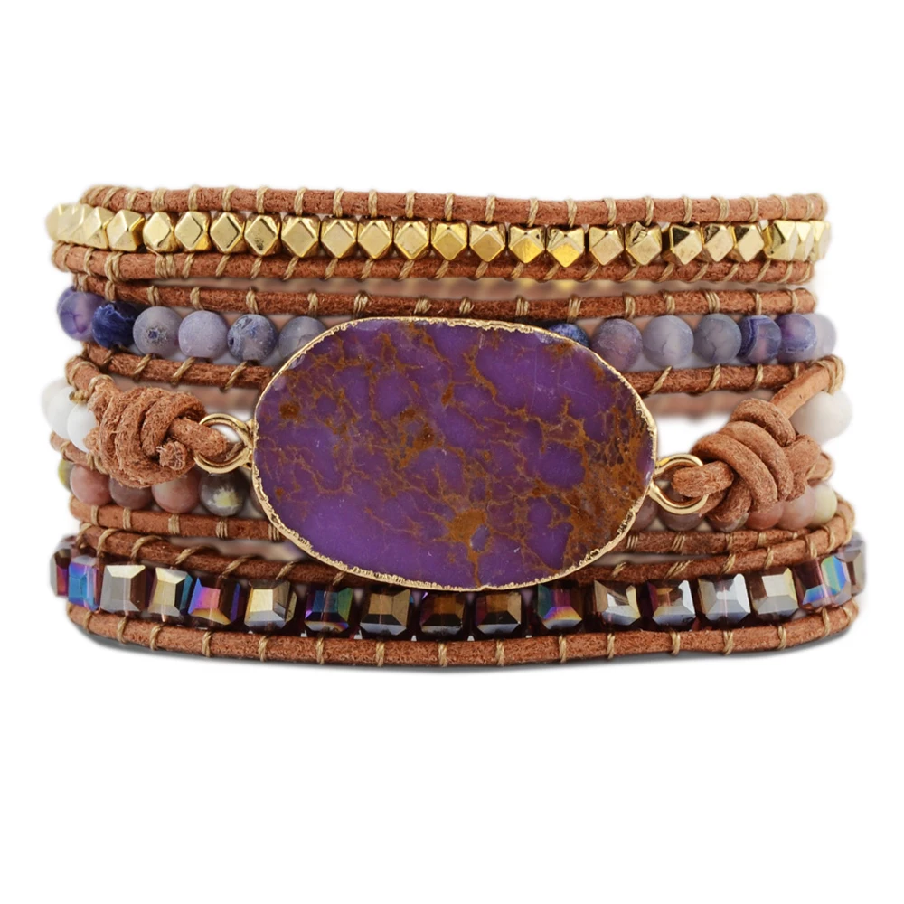 Product Name: Szorstki osad morski kamień bransoletki kamienie naturalne bransoletka fioletowy kamień skórzana bransoletka czeski dziewczyny prezenty Dropshipping
