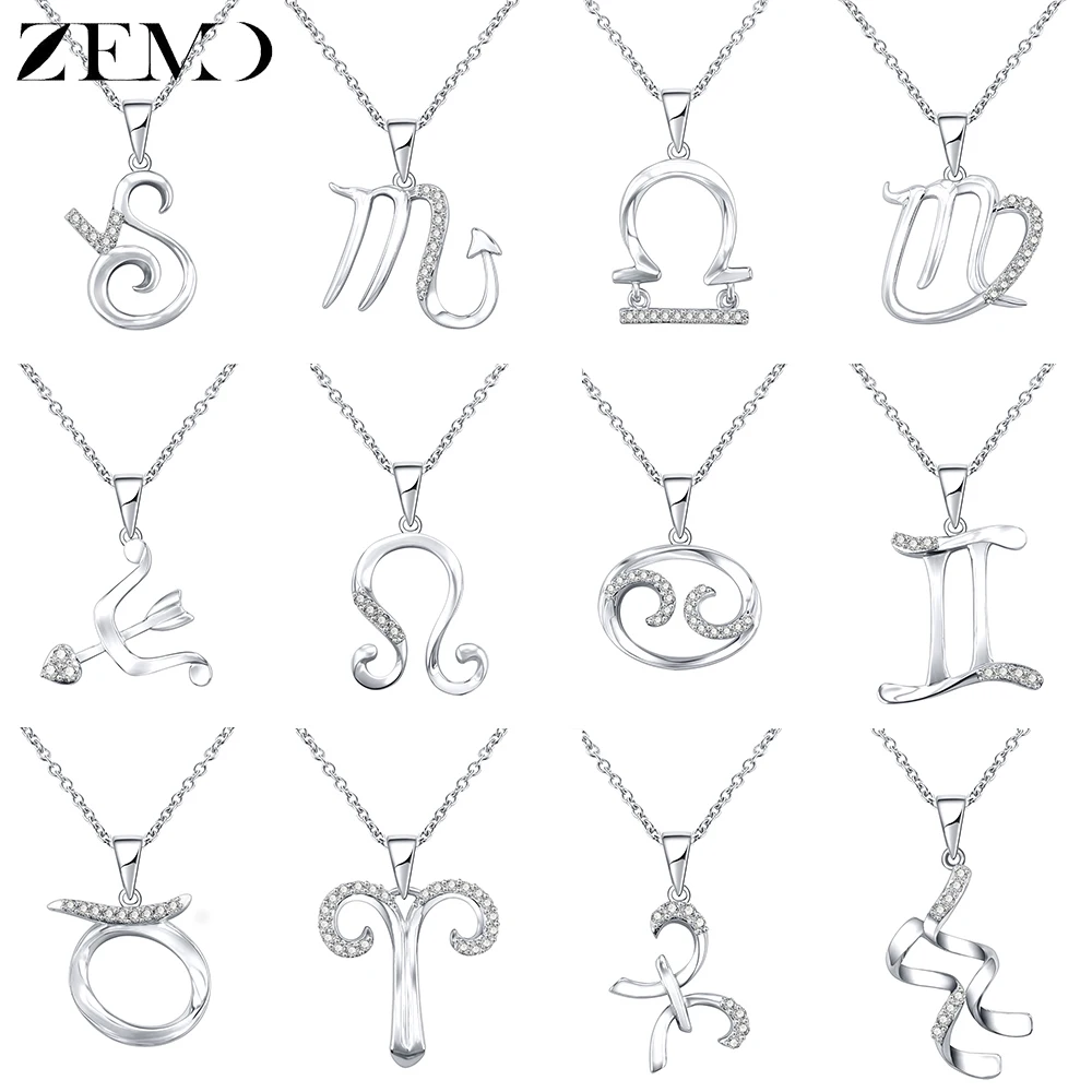 Special Offer ZEMO prawdziwe 925 srebro 12 konstelacji naszyjniki Choker kryształ znak zodiaku naszyjnik kobiety horoskop astrologia naszyjnik Discount 20% Today!