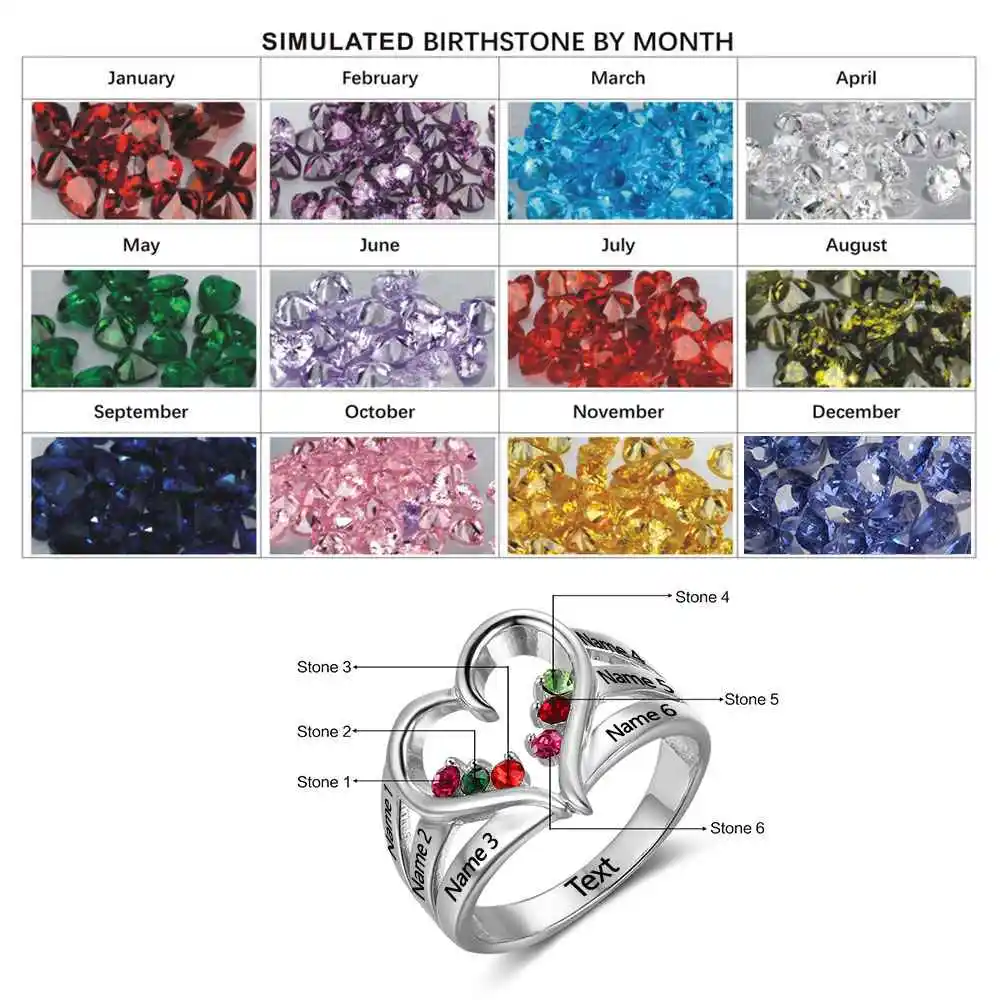Product Name: Nowy 925 srebrny pierścień z kamieniem związanym z datą urodzin wygrawerować nazwa obrączki Love Heart Shape pierścionki darmowe pudełko JewelOra RI102734