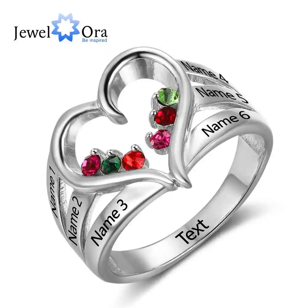 Special Offer Nowy 925 srebrny pierścień z kamieniem związanym z datą urodzin wygrawerować nazwa obrączki Love Heart Shape pierścionki darmowe pudełko JewelOra RI102734 Discount 30% Today!