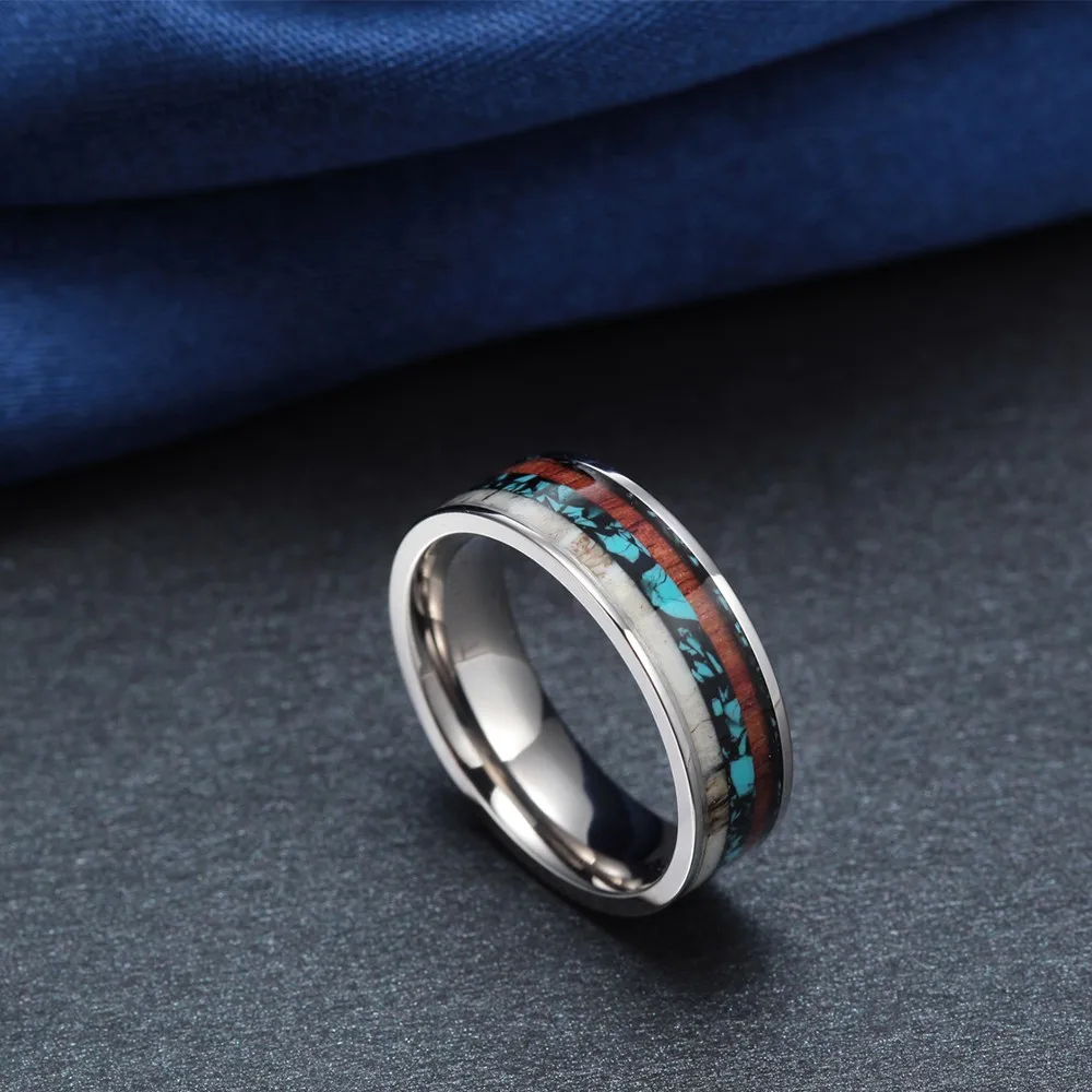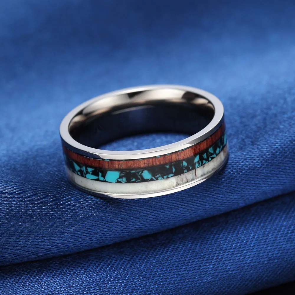 Product Name: Vintage 8 6mm mężczyźni obrączka naturalne oryginalne Deer poroża drewna wkładka tytanowy pierścień Warcraft Bague Femme Anillos Anel Masculino