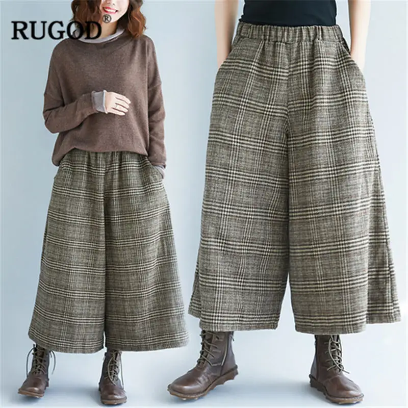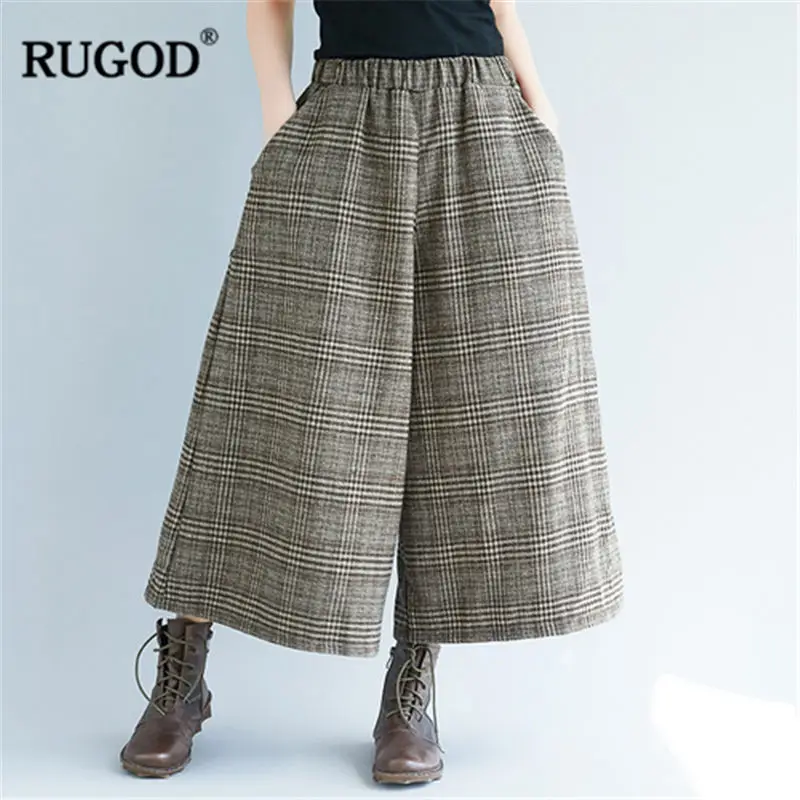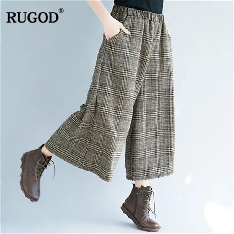 Special Offer RUGOD 2019 moda Plaid kobiety spodnie wysokiej talii spodnie z szerokimi nogawkami dorywczo luźne spodnie damskie pantalones mujer cintura alta Discount 42% Today!