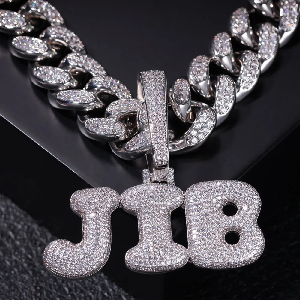Product Name: UIWN Custom Bubble Letters naszyjnik z 20mm kubańskim łańcuszkiem nazwa męska wisiorek z cyrkonią biżuteria prezent
