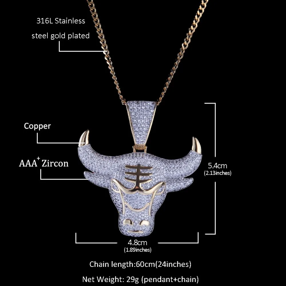 Product Name: UWIN Drop Shipping Charm król Bull Iced Out wisiorek z okrągły Cut 4mm tenis naszyjnik łańcuszkowy Hiphop cyrkonia biżuteria