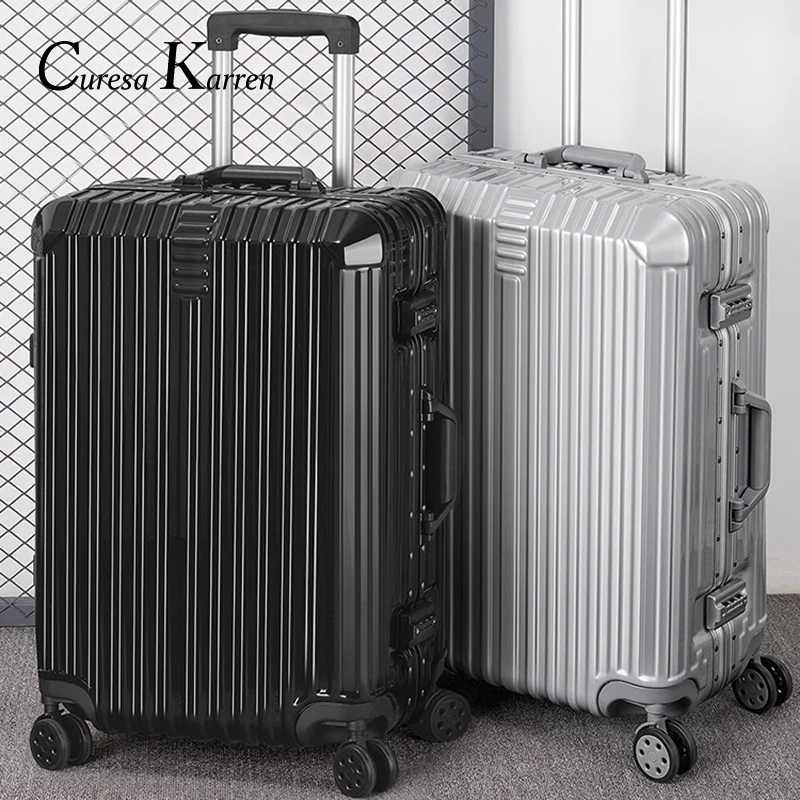 Special Offer Super moda nowy bagaż torba walizka podróżna bagaż służbowy pokrowiec na wózek na kółkach aluminiowa rama hardside cicha walizka Discount 49% Today!