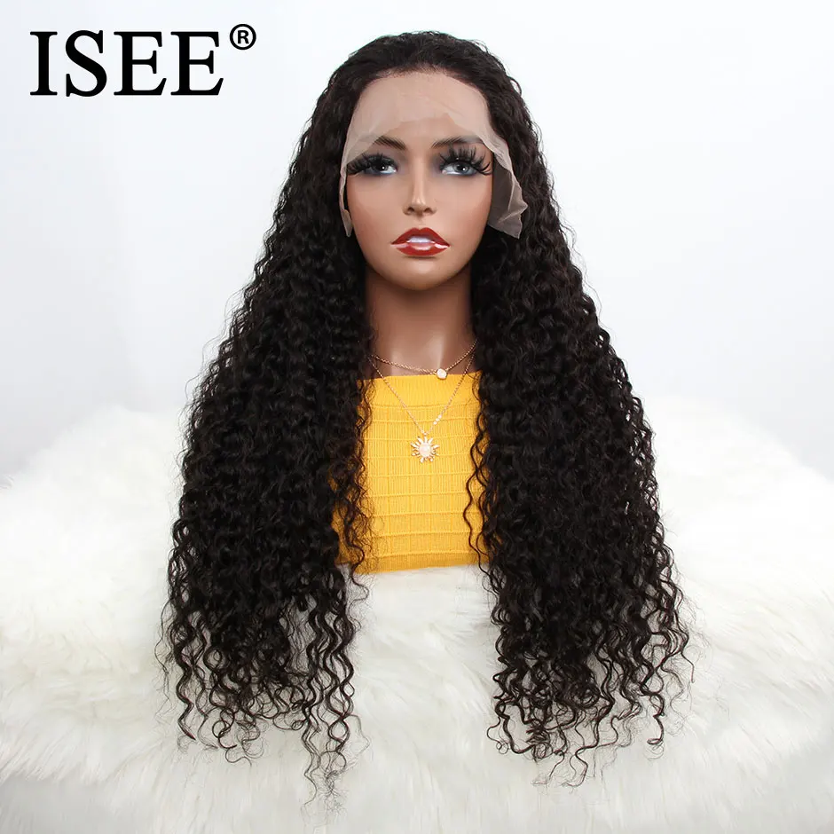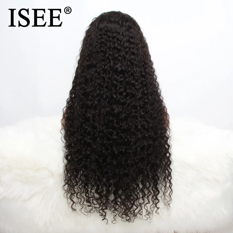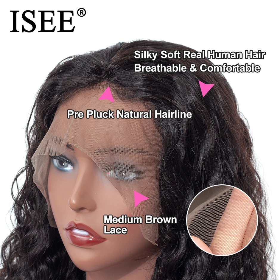 Special Offer Water Wave peruki z ludzkich włosów 13X4 koronkowe peruki z przodu dla czarnych kobiet Remy ISEE Hair 150% gęstość mongolski koronki przodu peruki z ludzkich włosów Discount 55% Today!